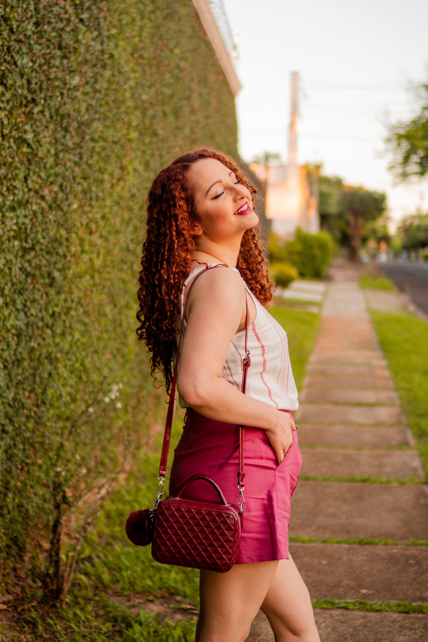 Look Rosa, Vinho e Branco Confortável
